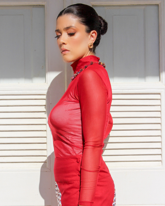 A Blusa Segunda Pele é a peça Tumemup. A modelagem dela é feita com as próprias medidas do corpo, sem muito acréscimo, para que ela fique certa, uma segunda pele, como o próprio nome diz. Com variações de cores, aviamentos e detalhes, sempre teremos essa peça, que funciona no papel principal da produção, como também nas sobreposições.